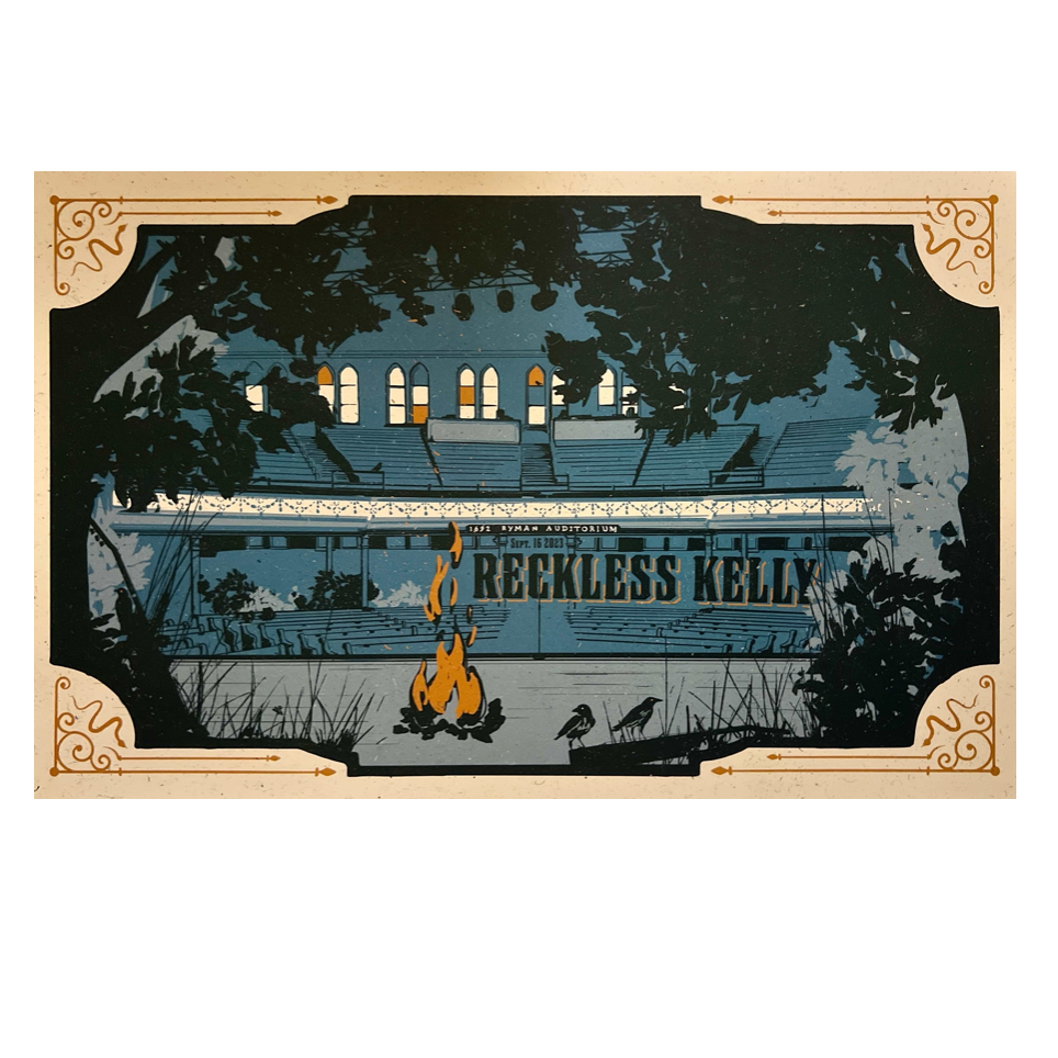 Reckless Kelly's official Ryman Auditoriun Concert Poster from their Sept 16th, 2023 performance.