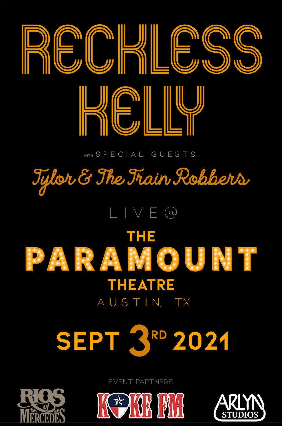 Reckless Kelly's official poster for their September 3rd show at The Paramount Theatre in Austin, TX.